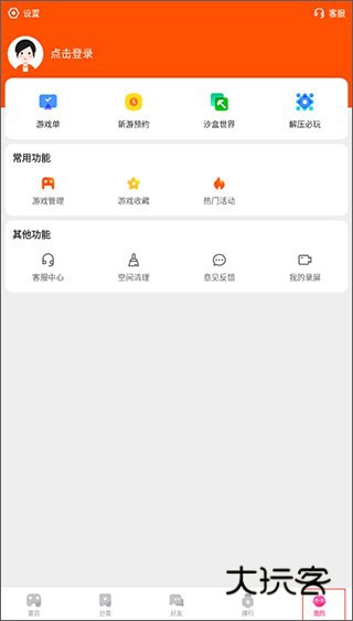 玩过的游戏、收藏的游戏在这里都可以找到,还有热门的游戏活动和其它功能,使用过程中遇到问题、或者对产品有建议也可以在这里反馈。
