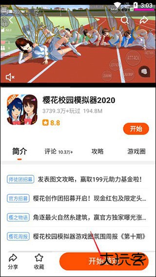 2、选中樱花校园模拟器进入,这里有详细的攻略和游戏圈,随时都可开始游戏;
