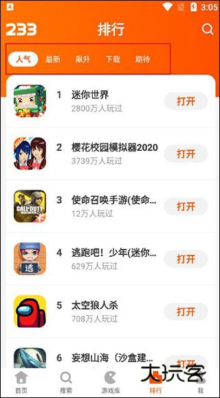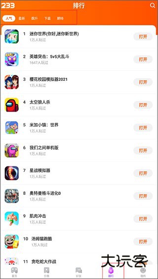排行榜主要分为人气、最新、飙升、下载和期待榜,可以轻松找到近期热门游戏,或者预约即将上线的新游戏。