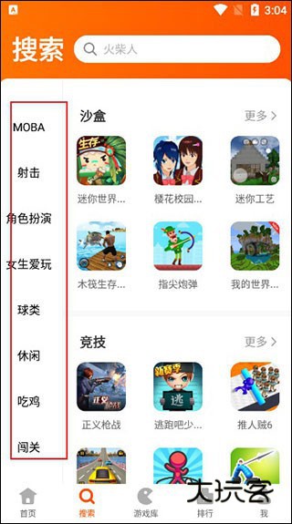 3、另外,也可在搜索当中,按游戏类型进行选择;
