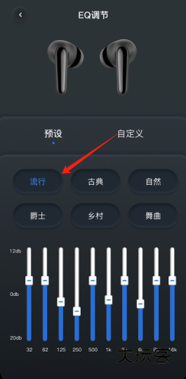 3、在预设当中你可以调整耳机的播放模式,比如自然、流行、古典等等