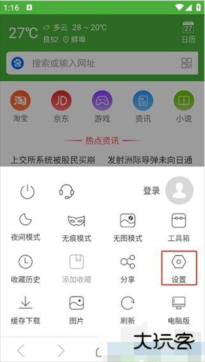 2.随后在下方会弹出一个选项框,需要找到其中的【设置】图标进行点击。