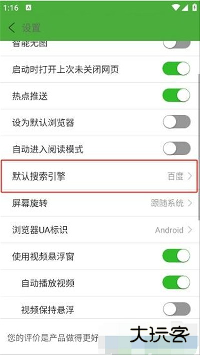 3.进入到【设置】界面之后,点击选项列表中的【默认搜索引擎】。