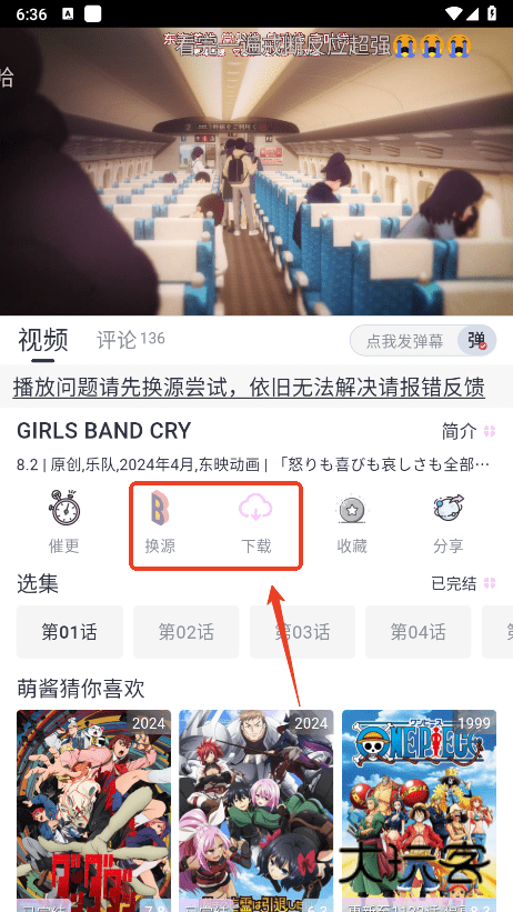 6.播放时,如果卡顿,可以点击换源或者下载视频到本地。