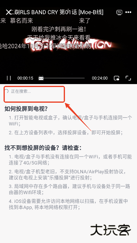 5.请确保手机和电视处于同一wifi下,否则可能搜索不到。