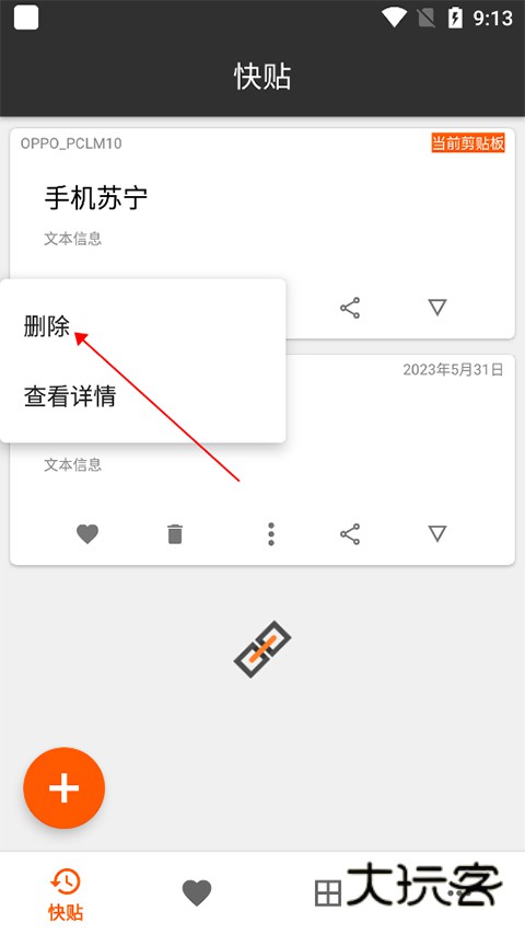 3、如果用户不想要刚才复制的内容可以点击菜单图标进行删除