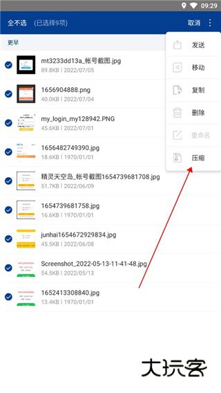 2、选择好后,点击右上角的三个点,选择【压缩】。