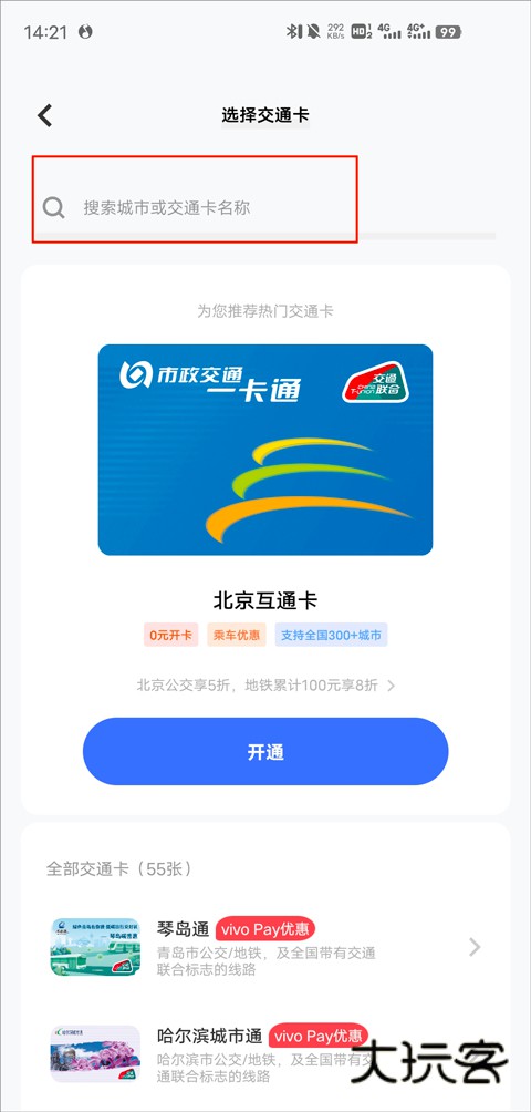 5、添加卡的时候有两个不同的选择,可以是绑定现有的公交卡,也可以是开新的卡。