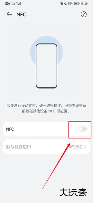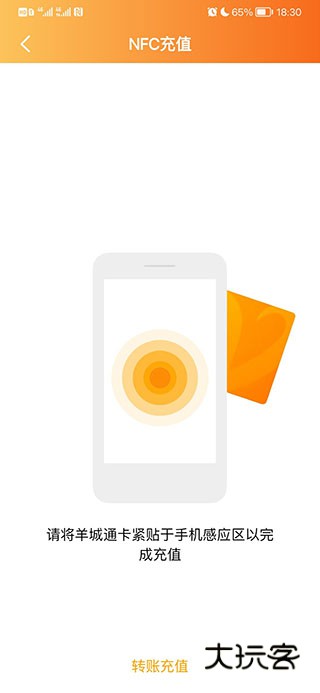 4、点击进入后,打开NFC开关,将羊城通卡紧贴于手机感应区。