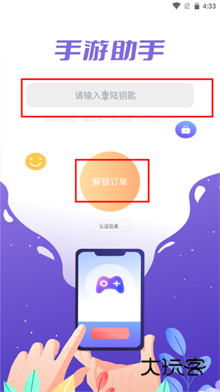 2、随后打开手游助手,进入输秘钥界面,输入已获得的秘钥。