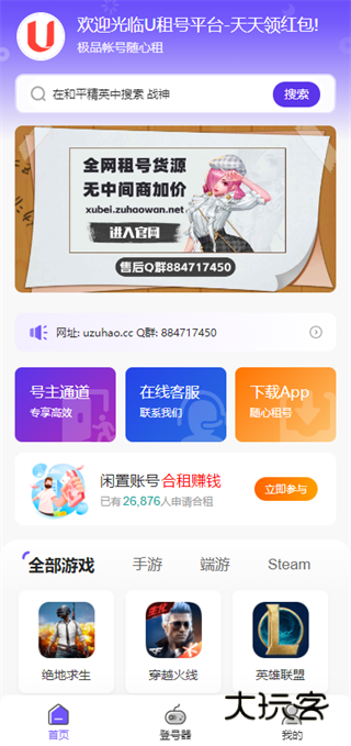 提供当下热门游戏(王者、lol、和平精英等)、火爆新游的账号出租