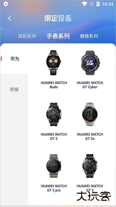 4、在打开的新页面中,切换页面至【手表系列】处选择手表型号,目前可支持华为和荣耀系列的多款手表。