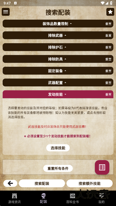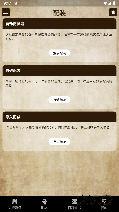 3、可以自由查看官方源的游戏百科,使用分类明确的游戏辅助工具,进行无限制模拟配装,深度了解各种装备等级效果。