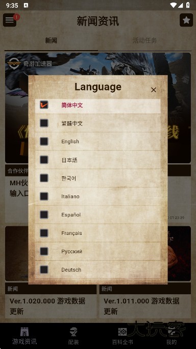 一款全面且方便的游戏辅助软件,提供最新游戏资讯、多语言支持、丰富配装选择等功能,玩家可自定义武器装配、查找怪物信息及游戏攻略等。