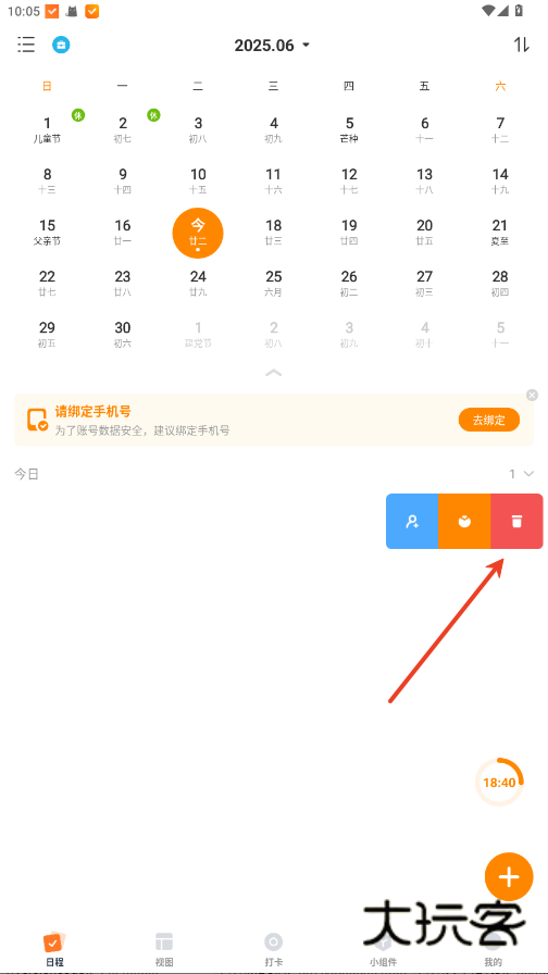 4、添加自己每天必须完成的任务以后,就能在app中快速的进行打卡。