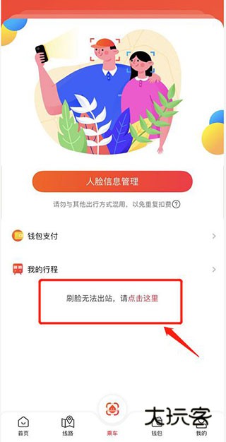 4、在刷脸出站时,如果遇到刷脸设备故障或提示无法出站情况,可打开App,点击生码按键,生成二维码,选择刷码出站。