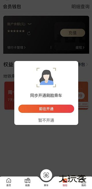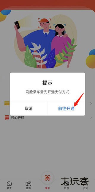 3、成功开通支付方式后,再点击前往开通按钮,就可以同步开通刷脸乘车功能了。