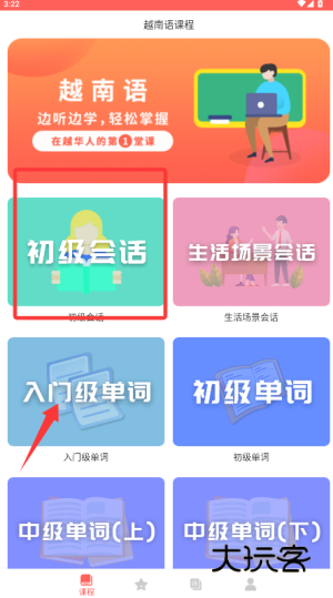 1、首先下载并打开天天越南语app,完成注册登录后,就可以进入主界面选择适合的课程。