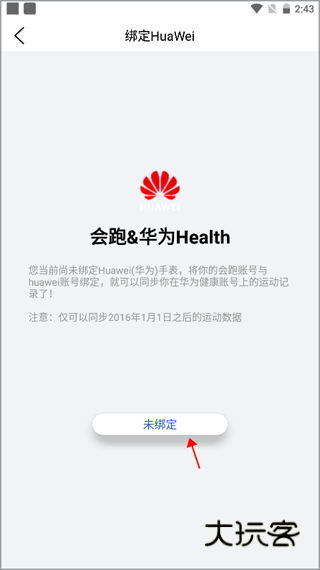 4、你会看到手表是出于未绑定的状态,要点击下方按钮,这样就同步手表上的运动数据了。