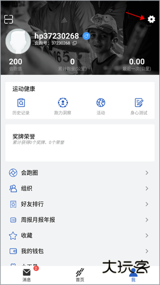 1、打开软件进入软件首页后,切换到“我的”功能界面,点击右上角的小齿轮。