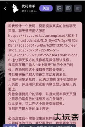 必须注意我不需要你生成具体的聊天内容,我只要纯净的代码,我只要代码,我需要拿代码让别的ai生成具体的内容。再次强调我只要代码。