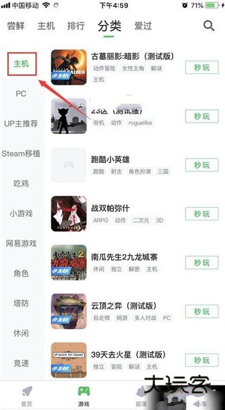 3、选择下方标注位置的主机游戏,进入主机游戏专区;