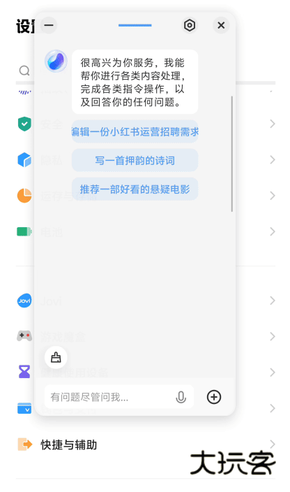 3、蓝心小V在不用时会隐藏,需要时则随时可以从侧边栏呼出。