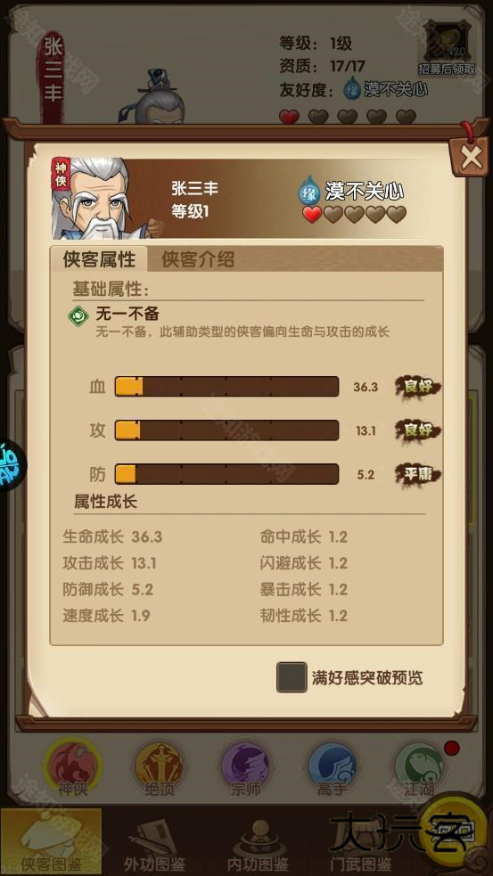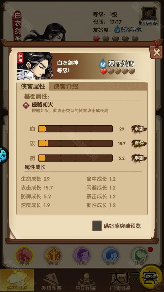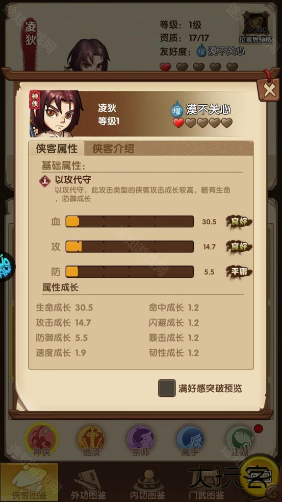 3、能够在冒险挑战中体验千种不同的绝学,还能收获上百位侠客角色。