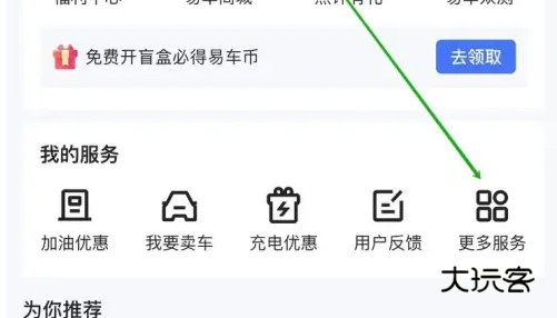 1、打开易车 我们选择“我的”进入,在“我的”界面我们点击“更多服务”进入