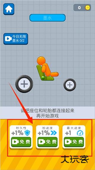 2、返回下面开始游戏,进入游戏准备阶段你可以提升车子耐久性、加速度以及最大速度。