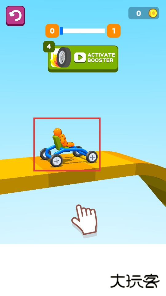 4、开始游戏后点击屏幕开始加速,如果车子翻倒,你不用担心一直点击屏幕加速车子还是能够前进,想赢得比赛必须将车子合理的组成。