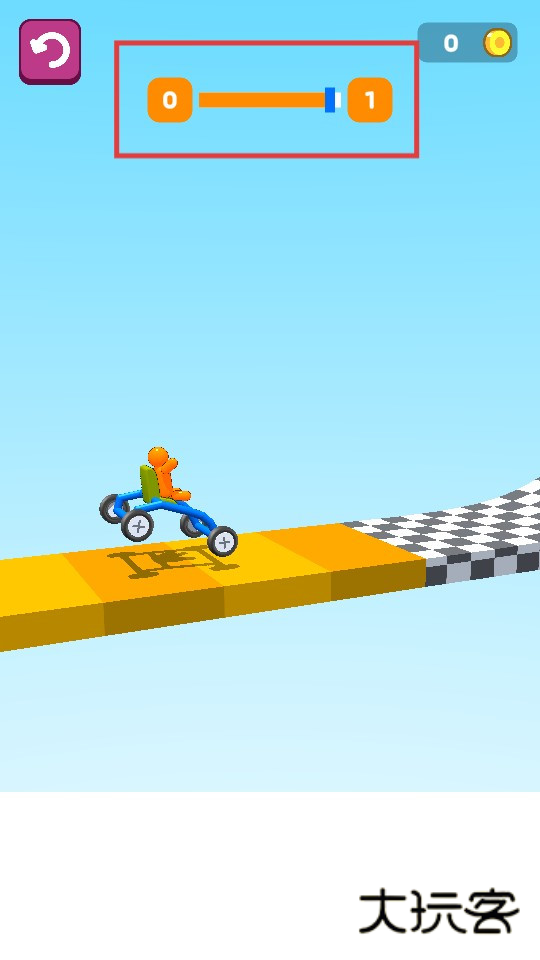 4、驾驶车辆朝着终点前进,争取让进度条从【0】推进到【1】,率先到达终点。