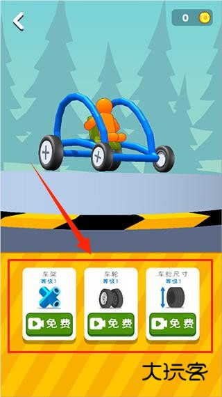 1、下载并打开游戏,进入游戏点击车间,将车架、车轮、车胎尺寸进行升级,提升车的性能。