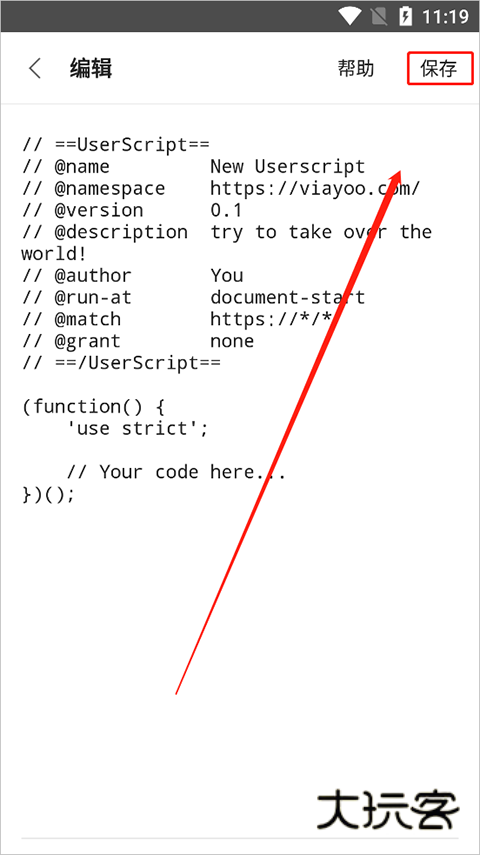 5、进入添加脚本界面,输入脚本内容,点击【保存】。