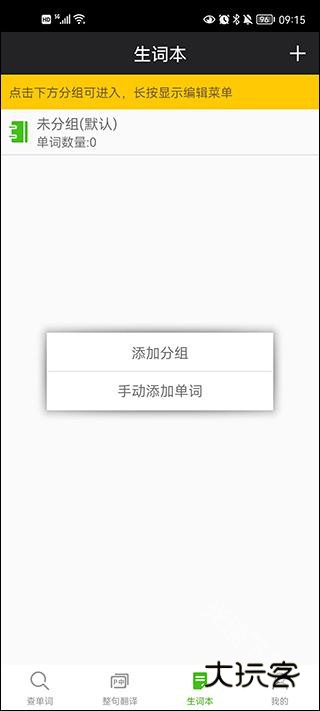 3、除此之外,用户还可以将生词本进行添加分组,方便以后需要的时候快速查询。