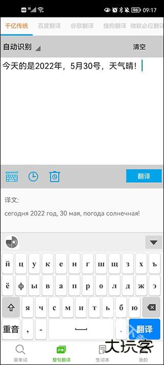 5、该软件还拥有一个特色键盘,只需要点击输入框左边的小图标,即可弹出俄语键盘。