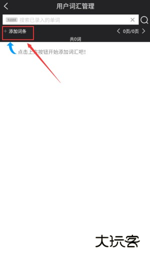 3、点击红框添加词条按钮,开始创建新词汇条目。
