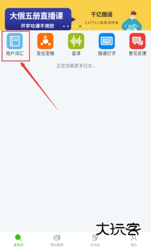 2、点击红框用户词汇按钮,查看个人词汇管理模块。