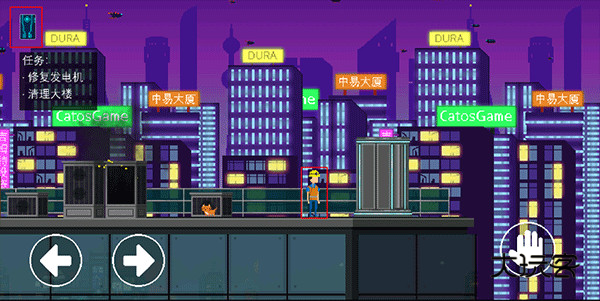 7、修好发电机后继续向左移动至楼顶尽头,出现交互图标后点击右下角按钮进入清理大楼的界面,一共需要经过四次清理,第2、3、4次的清理按照图示位置摆好信标即可通过。