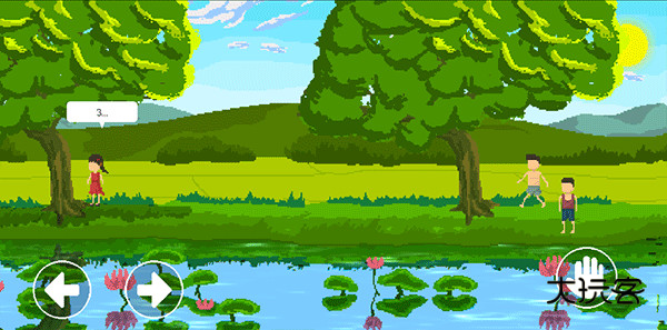 1、向右移动到大宇身边,当大宇头顶出现对话图标后,点击右下角的手印按钮和大宇对话,选择帮大宇钓鱼。