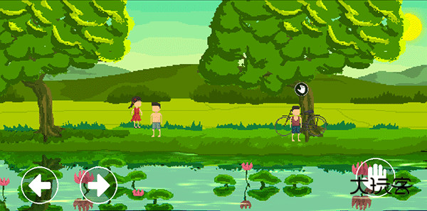 5、玩完木头人游戏后向右移动到树下自行车边,与自行车交互进入剧情,正式开始游戏。