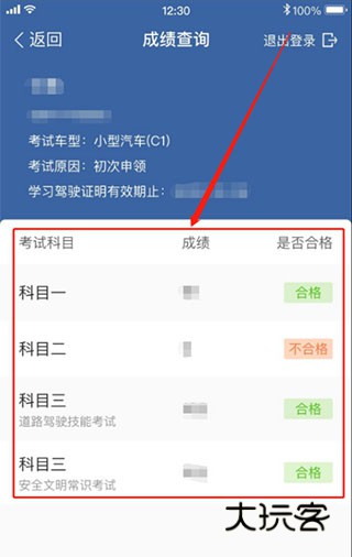 5、之后,点击登录,登录之后,会跳转到成绩页面,显示以往考试记录的成绩。