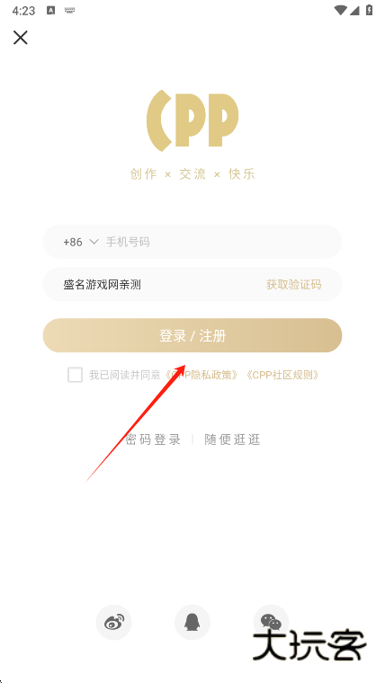 1.下载并安装cpp无差别同人站app,如果没有账号可以点击下方注册按钮