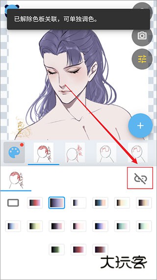 2、找到需要统一换色的部位,把它们与这个色板关联起来。