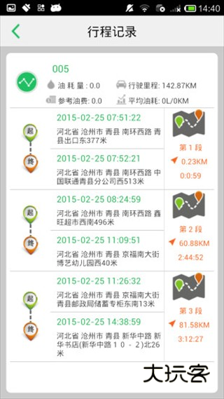 4、点击行程记录就能查看每个时间段的行程。