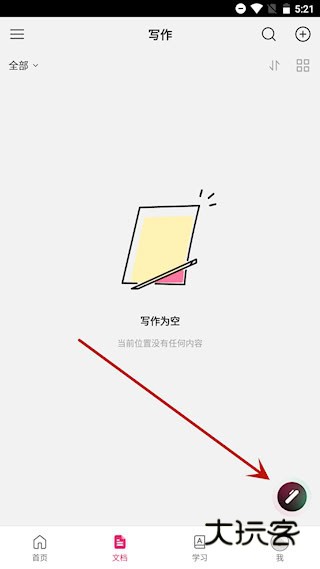 2、进入文档模块界面后,点击右下方笔形图标,开启编辑功能