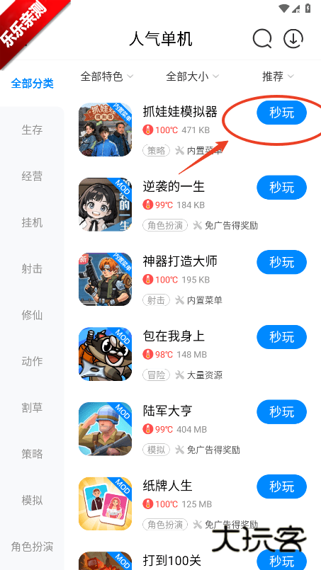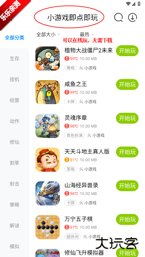 4、小游戏,则无需下载,热门的手游或者单机,都可以一键开始玩。