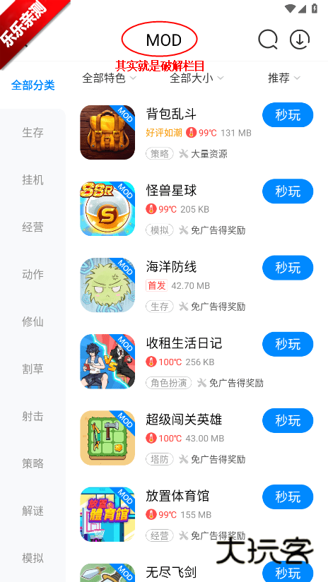 2、MOD分类的游戏,其实就是内置菜单、破解、内购、无限金币这种游戏;