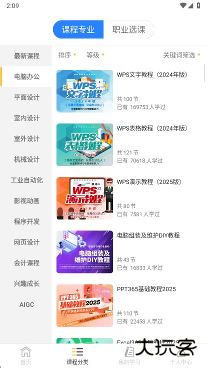 1、在本站下载安装我要自学网app并打开,可以在首页看到全部的课程分类