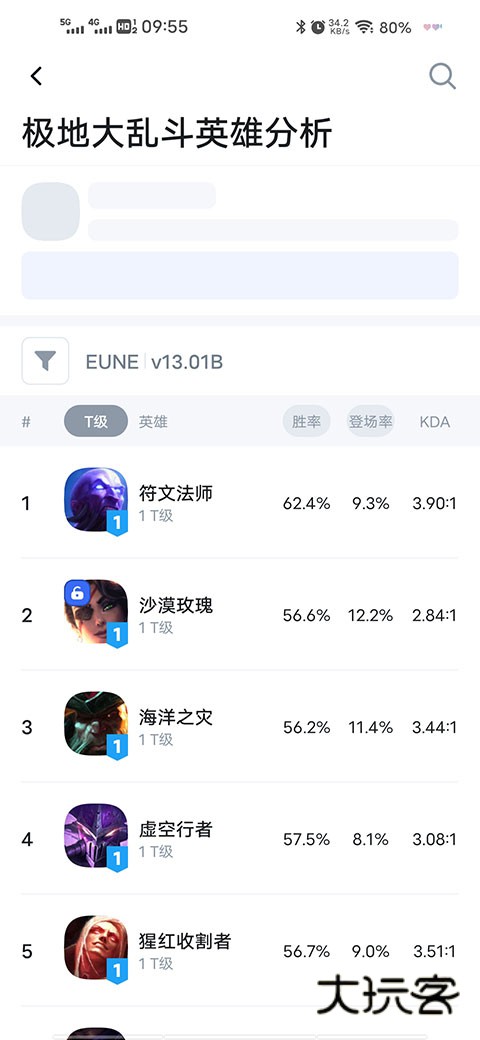 2. 清晰明了的网格数据让每个人都能了解到韩服、中服、美服等热门服务器地区英雄玩家的排名。